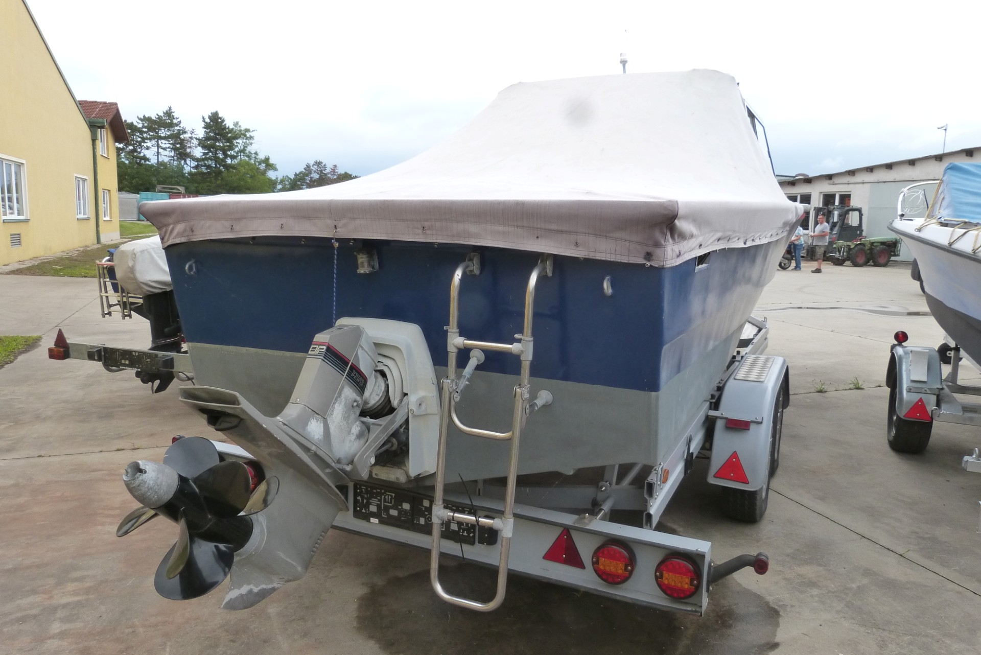 ehemaliges Polizeiboot, Baujahr 1988, Volvo Dieselmotor 140 KW, Spyder V21, Volvo AD31D BT<br />Zentralachsanhänger, Baujahr 04/2011