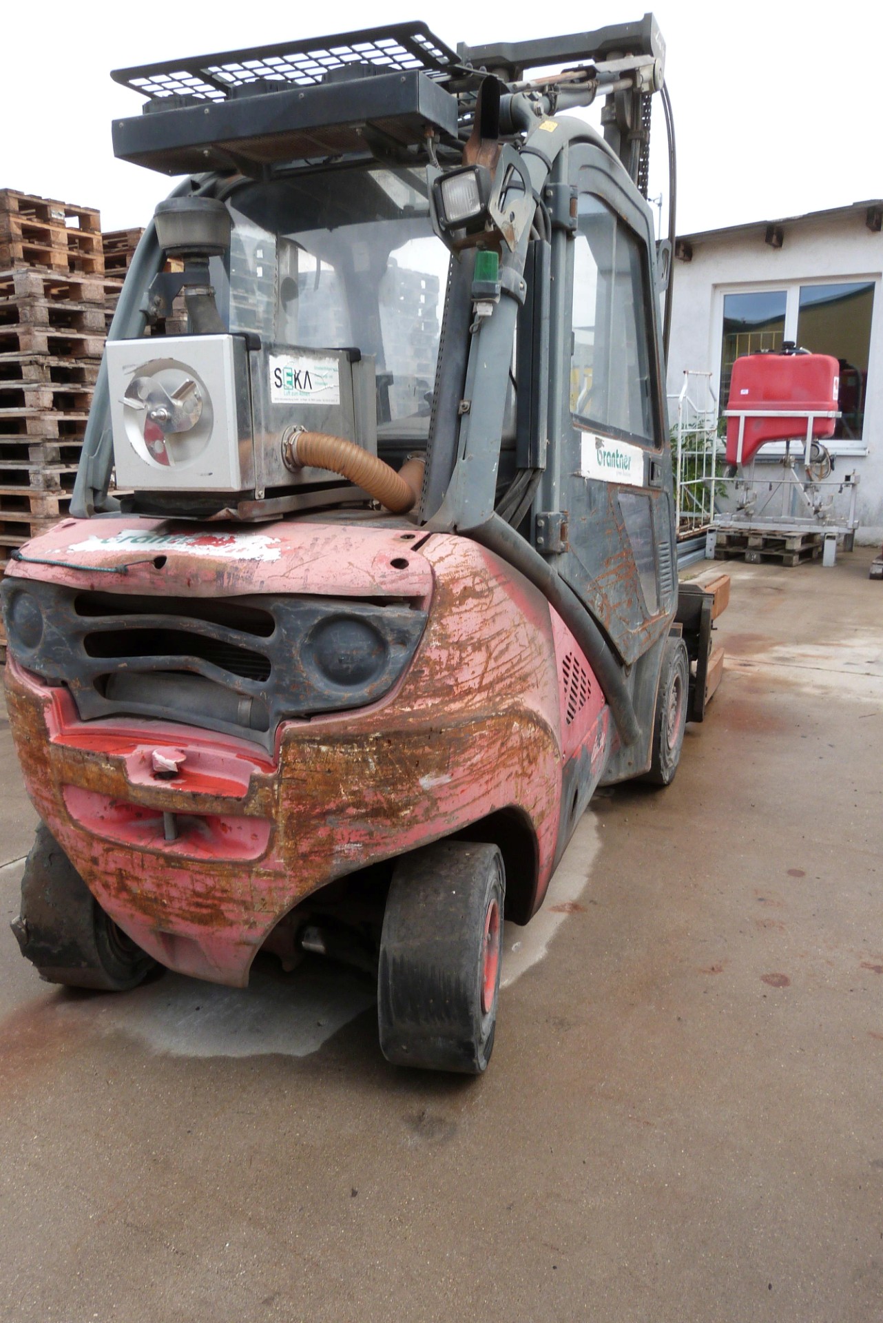 Stapler Linde mit Wendegreifergabelaufsatz